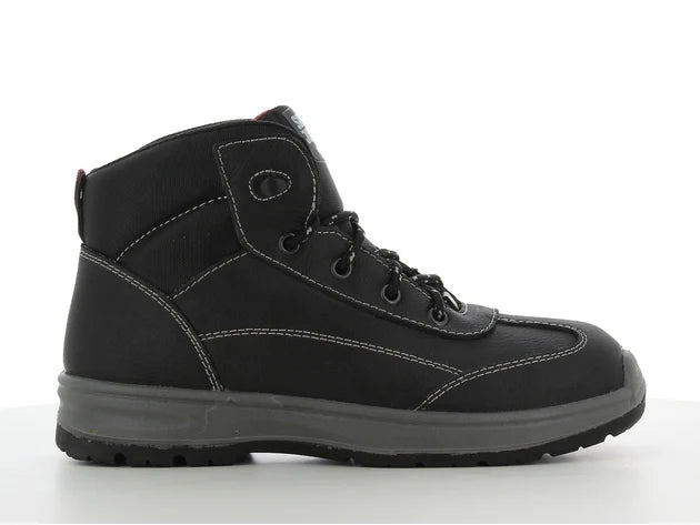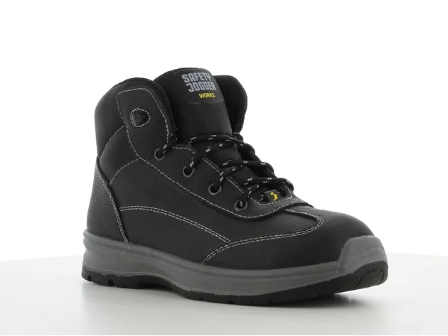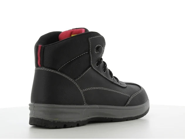 Chaussure de sécurité mi-haute spécialement conçue pour les femmes, combinant protection, confort et élégance pour un usage professionnel exigeant.